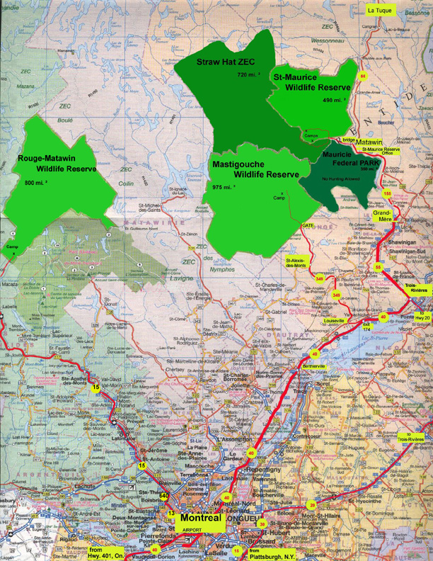 LaVerendrye Wildlife Reserve: Located less than 4 hours from the Montreal International Airport. 24 hunters accepted in Full Guided Camp. 2 camps 6 rooms available, 2 person rooms. (This is a new location) 24 hunters accepted for the whole season. Few trophy hunt’s are also available at this new location. |